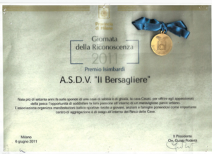 In data 6 Giugno 2011, l’associazione “IL BERSAGLIERE” ha ricevuto dalle mani del Presidente della Provincia di Milano il prestigioso premio “ISIMBARDI” a conferma della bontà del nostro operato e dell’impegno profuso nell’aggregazione dell’utenza all’interno del Parco delle Cave.